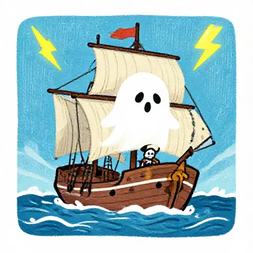 When the barometer drops and the swells start running long and the old hands on deck go quiet the way animals go quiet before an earthquake, sometimes a ship appears on the horizon that is not on any chart. Sailing straight into the weather. Moving faster than the wind that should be pushing it. Lit from within on nights when no lantern could possibly stay lit. A cold greenish glow that sits on the rigging like someone left the Christmas lights on in 1680 and nobody has turned them off since.